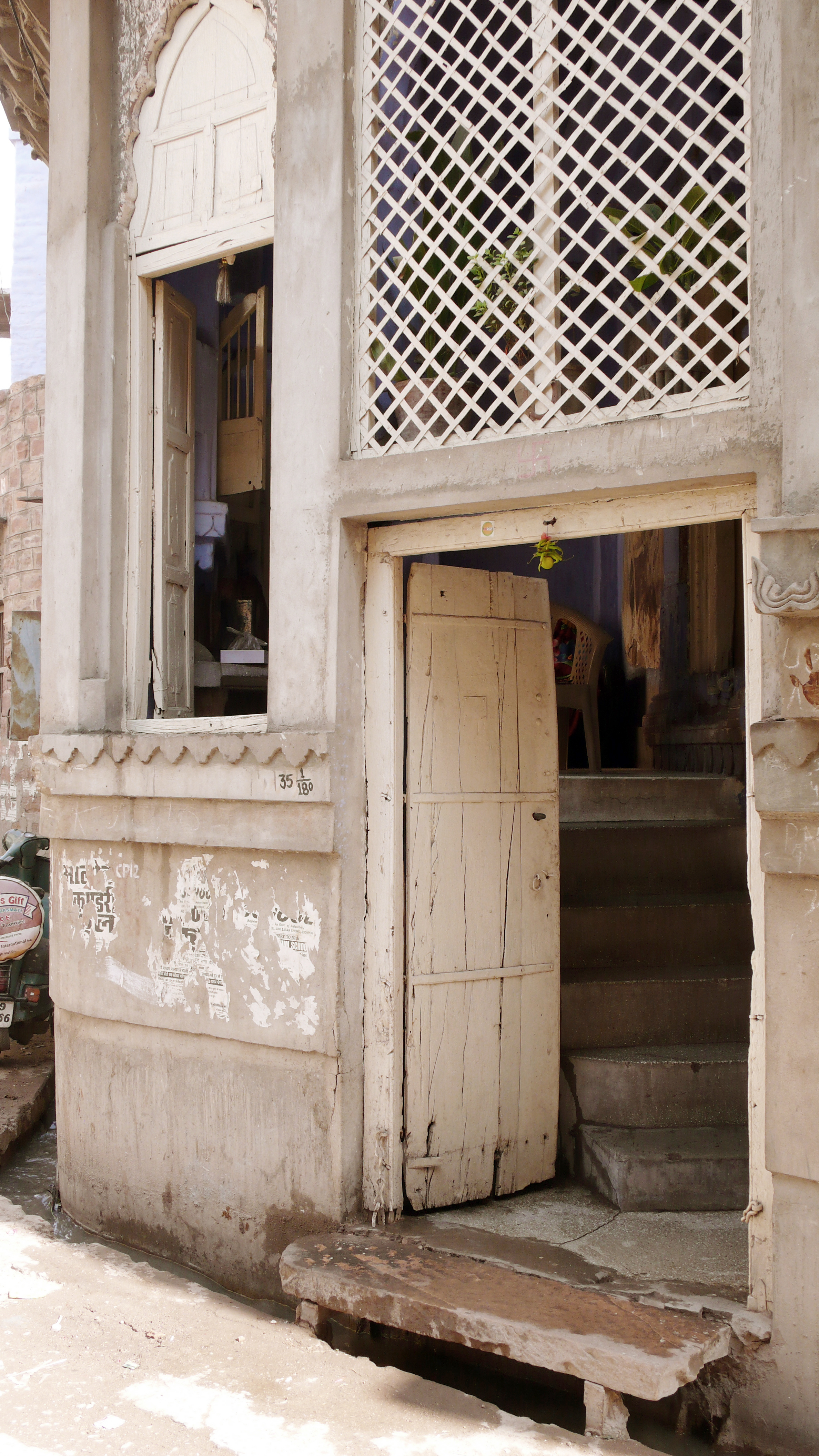 A small street side abode in Jodhpur, located on a protruding bend in the warren-like laneways of the old city, projects itself into the public realm. It is relatively straightforward in its composition. One volume, two split-level floors linked by a simple concrete stair, and a collection of three humbly wrought openings. Despite its humble construction, this small room manages to emit a delightfully civil charm and enlivens its setting.